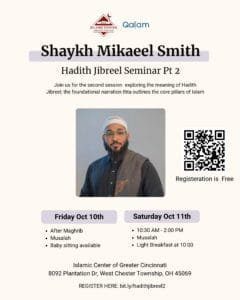Please join us on the 10/11th to continue learning and benefiting from our guest speaker Shaykh Mikaeel Smith.